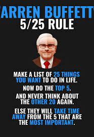 We underestimate the cost of good distractions. Warren Buffett’s 25/5 rule reminds us that our biggest obstacles aren’t bad ideas... they’re good-but-not-great ones. After identifying your top 5 priorities, Buffett says to avoid the other 20 at all costs. Why? Because they feel productive but slowly dilute your impact. Saying no is more than the time you save, it's actually about protecting your ability to go deep on what matters most.