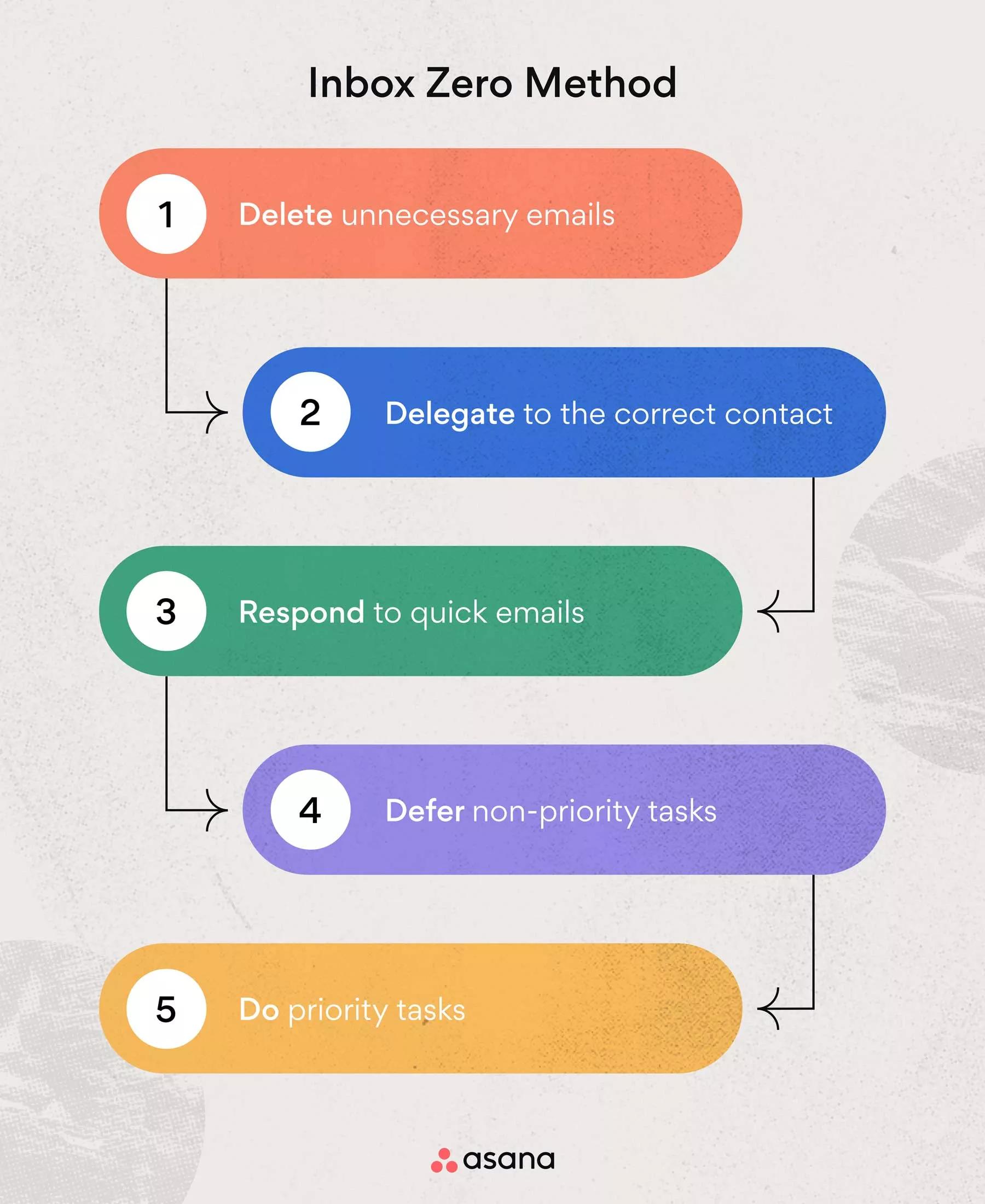 Use the 2-minute rule: If a message is actionable and takes less than 2 minutes, do it. If not, defer it (calendar/to-do) or delegate it.